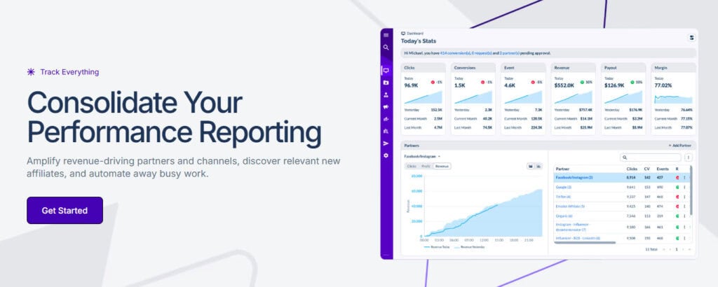 Where many competing platforms force you to choose between fraud prevention, conversion complexity, and payout flexibility, Everflow handles all three (and then some!) without compromise. Its multi-event tracking architecture is purpose-built for complicated customer journeys and multi-stage attribution. Add in fraud controls, real-time reporting, and intuitive payouts that support milestone, tiered CPA, revenue share, and hybrid structures, and you have a platform worth a spot on your short list.