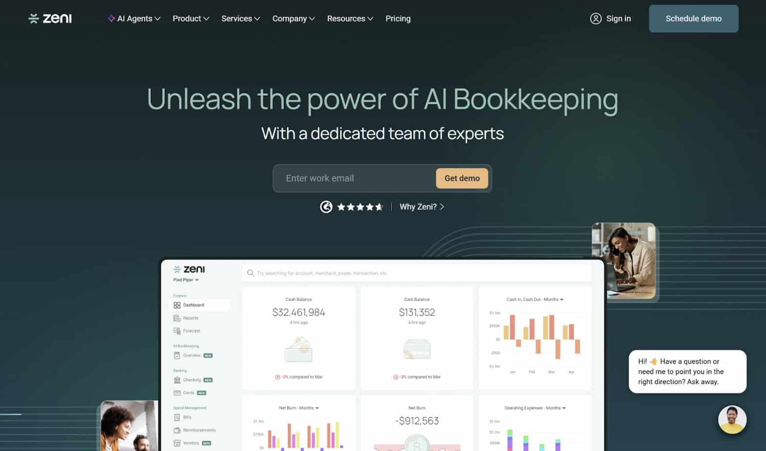 • AI-Powered Financial Insights: Zeni gives you real-time insights into your business’s financial health, detecting trends and potential issues. It also conducts financial analysis and can provide you with informed recommendations for your business.