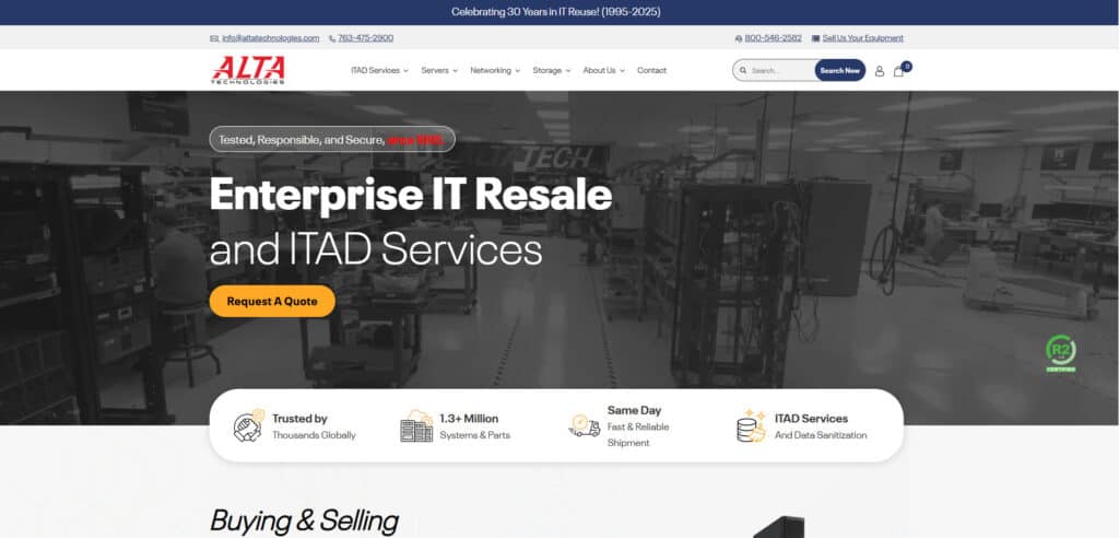 If you’re looking for the most capable all-around option, Alta Technologies is the standout choice — and not just because they’re headquartered in Minnesota. Their local presence absolutely helps with logistics and faster turnaround, but the bigger advantage is that they operate at a scale very few regional ITAD companies can match.
