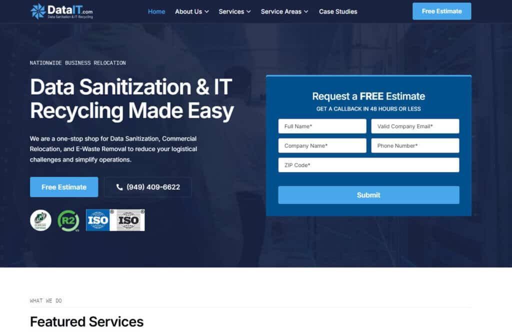If your project involves removing cabling, unmounting equipment from racks, or physically clearing out a room prior to a remodel or lease turnover, DataIT is a strong fit. DataIT’s expertise includes specialized services like SAN dismantling, blade server removal, and structured cabling extraction, which many smaller ITAD firms cannot manage. They also offer on-site documentation and certification of destroyed drives, making them well-suited for organizations in healthcare, finance, or higher education. For Minnesota-based enterprises needing hands-on teardown, DataIT ensures that even complex server rooms are cleared efficiently and safely.