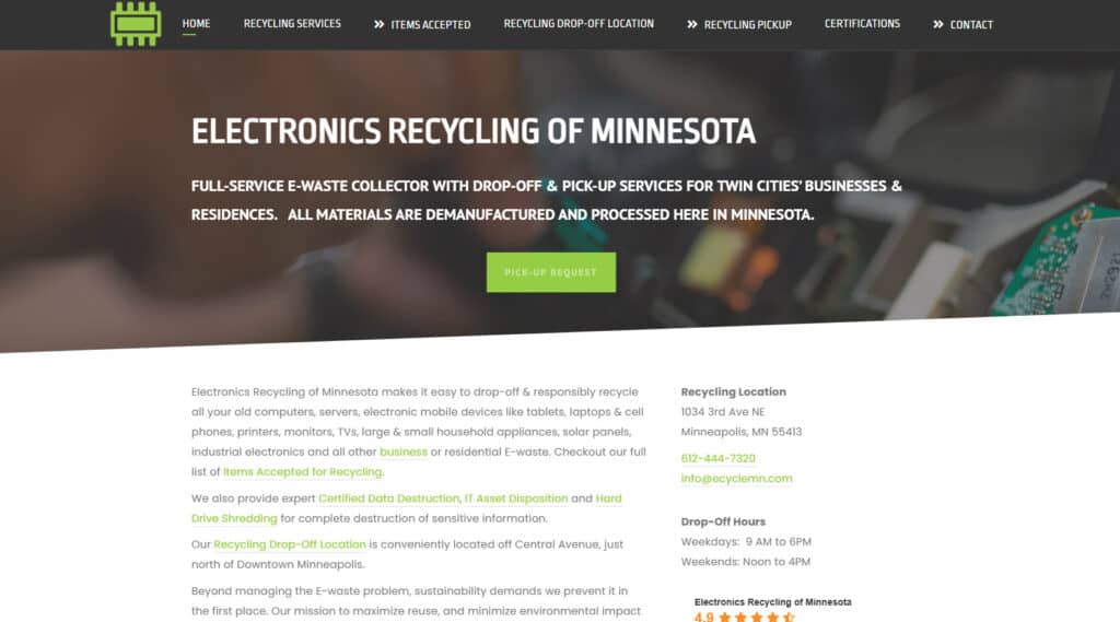 7. Electronics Recycling of Minnesota (ECycleMN) — Good for Local Data Destruction and Pickup