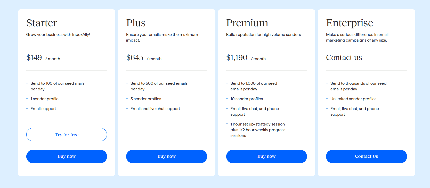 InboxAlly offers multiple tiers to help businesses choose the best plan for their needs.
