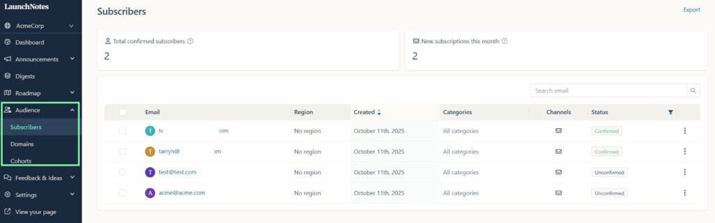 Both LaunchNotes and AnnounceKit have segmentation features within the tool. These can be configured depending on your needs and requirements for roadmap and announcements.