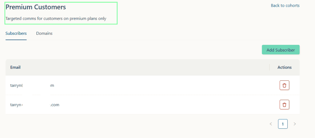 Cohorts are a further step in advanced segmentation, which allows you to set up a list or group of subscribers. I like the fact that you can set up a cohort to target a specific domain or groups of specified individual users, allowing you to send important communications (via email or on the product updates page) based on a category or notification, regardless of whether users have subscribed or not.