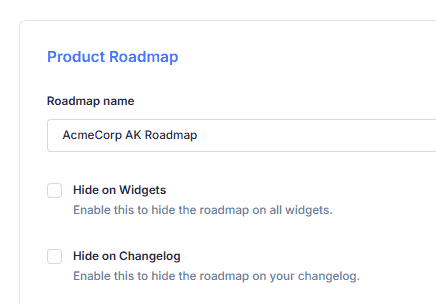You can also hide your roadmap on your widgets or changelogs, which may, in some instances, allow a better experience depending on your audience and whether your roadmap needs to be public or internal only.
