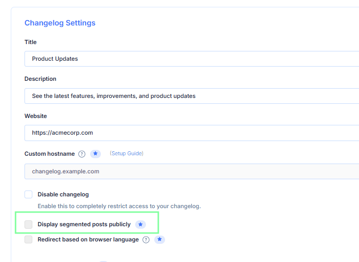 LaunchNotes has advanced options for users who need to set up segmentation or cohorts.