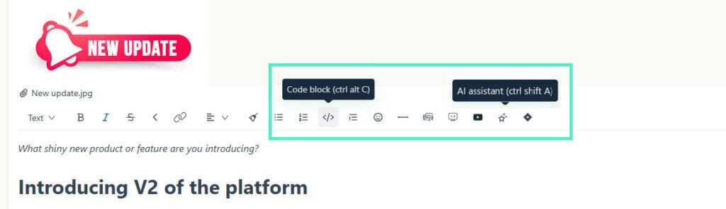 This is a great way to help product teams generate markdown content or add in relevant eye-catching headings or emojis, in a way that is usable across platforms or widgets.