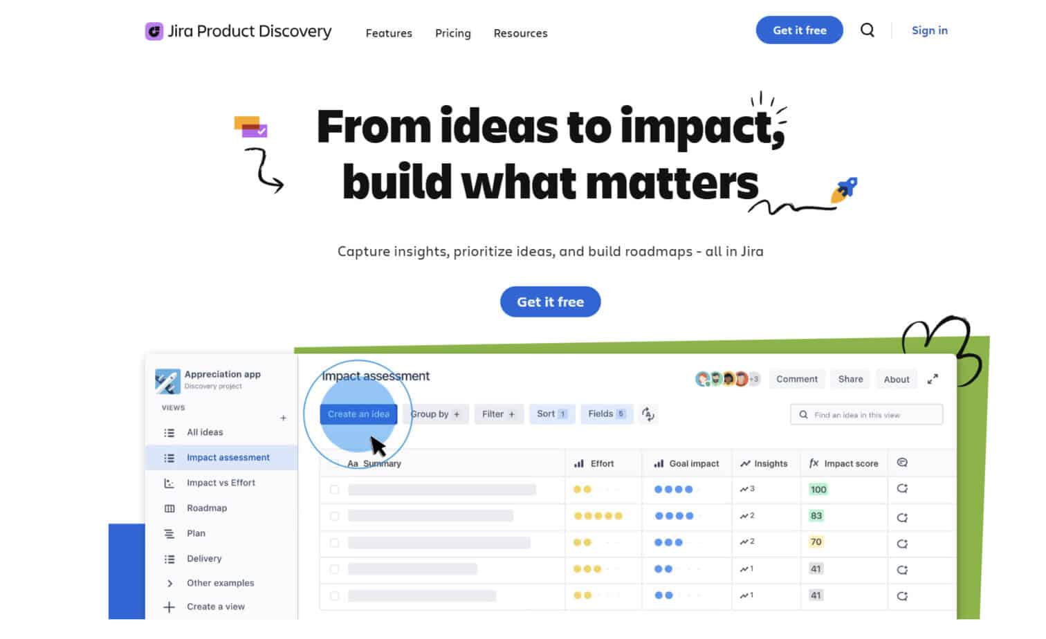 Jira’s Product Discovery is a solid alternative for teams that already use any of Atlassian’s tools, like Jira or Confluence. Integrated initiatives can be easily linked to tasks, development items, or project management tasks, all within one tool.