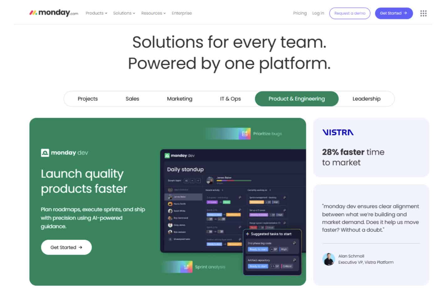 Monday.com has a wide range of functionalities within the platform and is a popular alternative for teams that want more than just a roadmap management tool. Although it may require a more hefty implementation than more lightweight tools, Monday.com can help deliver functionality across teams in sales, marketing, finance, project management, and product, all within one platform. It’s ideal for project-management-focused teams who want to manage ongoing work across departments.