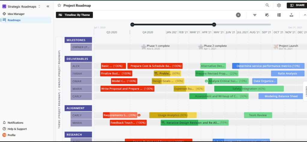 - Extensive segmentation functionalities within the tool allow organizations to split out key roadmap items as well as communications.