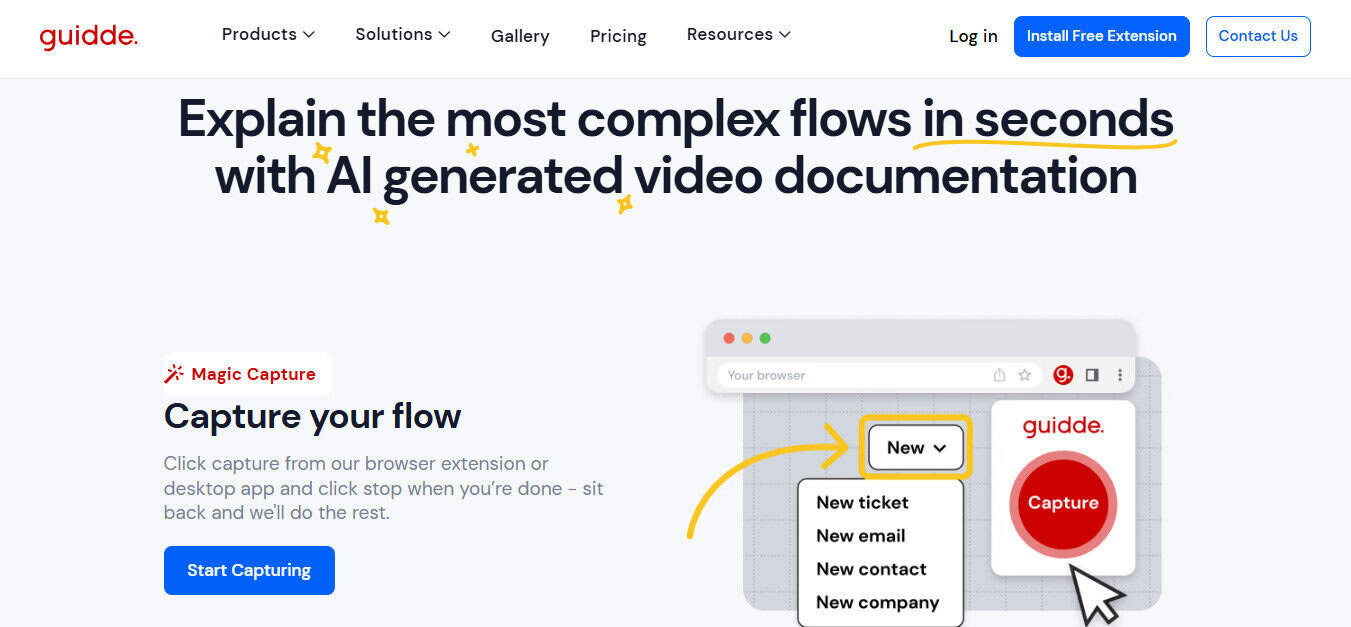 If you’re more “show than tell,” Guidde hits the sweet spot. It lets you create short, snappy video tutorials with zero editing experience, which is perfect for explaining internal tools, onboarding flows, or anything visual.