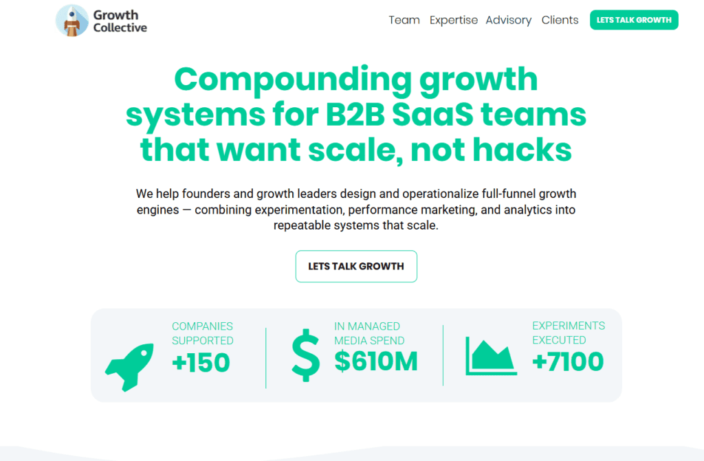 Growth Collective operates more like a curated freelancer network with an emphasis on growth marketing roles. It can be a good option for companies that want access to specialists across channels like paid media, CRO, and analytics without hiring full time. The strength of Growth Collective is variety. You can find specialists across many disciplines, and the barrier to entry is lower than premium platforms. For teams with strong internal leadership who can manage contractors effectively, this can work well.