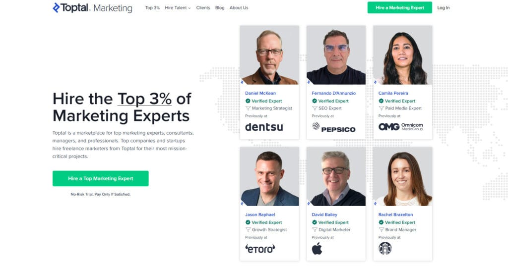 Toptal is often associated with engineering talent, but they do offer marketing professionals as well. Their brand is built around elite vetting and premium pricing. In theory, this ensures quality. In practice, the experience can vary depending on role and match. Toptal tends to work best when you have a very specific, high stakes need and are willing to pay for access to a tightly controlled talent pool. The tradeoff is flexibility. Engagements can feel rigid, and cost can add up quickly. For companies experimenting with channels or needing adaptive support, this can feel restrictive.