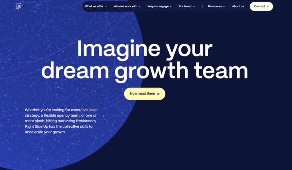 Right side up has become one of the most recognizable names in fractional marketing, and that’s largely because they didn’t try to reinvent themselves as an “agency.” Their core promise is simple (and actually refreshing, in my opinion). Strong marketing orgs are built around great full-time leaders, supported by the right mix of fractional talent and agency execution. RSU works best when a company already has some understanding around what they’re trying to accomplish but needs experienced marketers to help execute, scale, or stabilize specific functions.